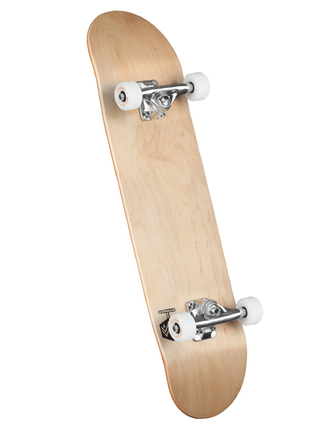 Mid-size boards 7.5 inches are ideal for kids ages 9-12. It’s a fully assembled board, ready to skate on right out of the box. This board features Mini Logo trucks, 53mm wheels and is completely finished with bearings, griptape and bolts. The natural colour is neutral enough for your tween to customize with whatever stickers they desire to make it their own. Mini Logo is a top-rated brand in the skateboard industry. The price-point makes it a perfect starter board for tweens.